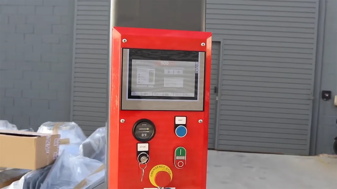 The Ronda 900+ wrapping robot is the perfect solution for wrapping loads of any size in any location, without the need to move them. Featuring a motorized pre-stretch system of 300% or 380%, it ensures optimal film usage and efficient packaging. Its touchscreen interface allows for easy configuration of wrapping parameters, including program memory to adapt to different operational needs.